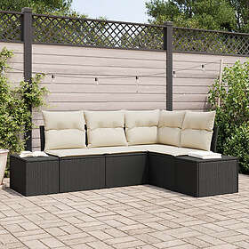 vidaXL Lounge Sæt 4 Stykker med Hynder Sort Poly Rattan