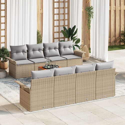 vidaXL Lounge Sæt 9 Dele med Hynder Beige Poly Rattan Akacie