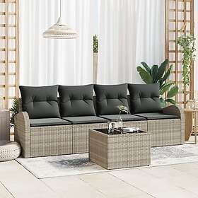 vidaXL 5-delat trädgårdssoffa-set med kuddar ljusgrå polyrotting
