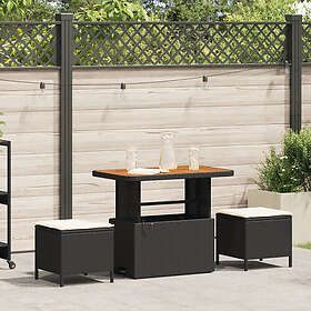 vidaXL 3 Delars Trädgårdsmatsets med Kuddar Svart Poly Rattan Akacia
