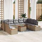 vidaXL Lounge Set 10 Dele med Puder Beige Poly Rattan Akacie