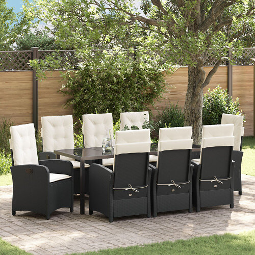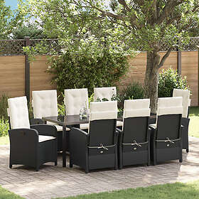 vidaXL 9-delat trädgårdsset med kuddar svart poly rattan