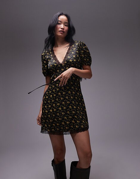 TOPSHOP Mini Tea Dress With Lace Edge