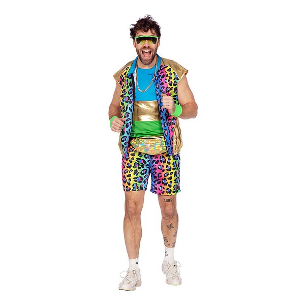 80-tals Neon Leopard Herr Maskeraddräkt Small