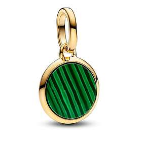 Pandora ME Engravable round 14k gold-plated mini medaljongen with man-made imitation of malachite 763389C01