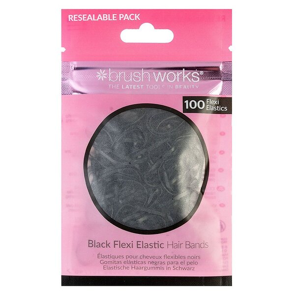 Brushworks Black Flexi Elastic Hair Bands 100pcs