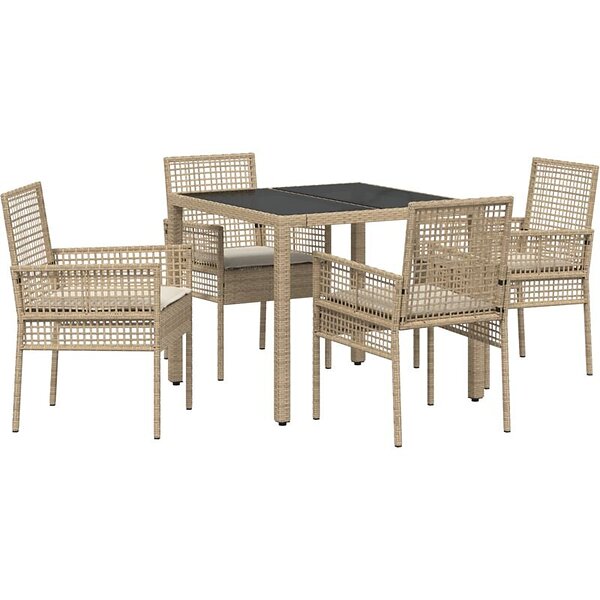 vidaXL 5-delt havedining sæt med hynder beige polyrattan