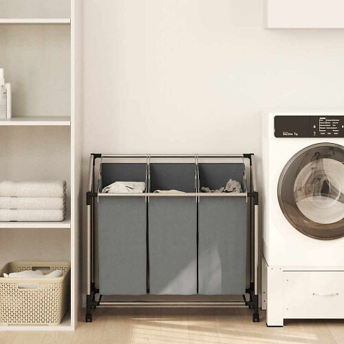 vidaXL Tvättkorg med hjul 3 fack grå