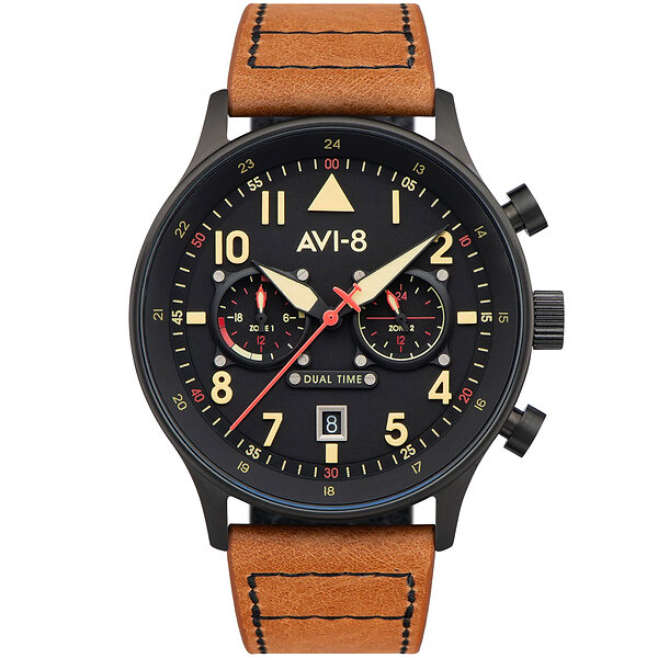 Avi-8 Carey Dual Time AV-4088-03 Herr 43 mm Analogt Mecha-Quartz Mineralglas
