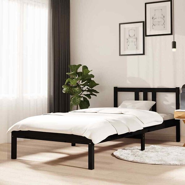 vidaXL Bed Frame without Mattress Black Solid Wood 90x200 cm