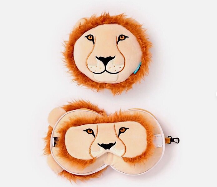 Relaxeazzz Løve Plys Rejsepude & Øjenmaske (Beige)