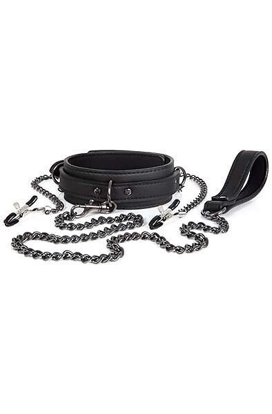 Please Be Kind! Dark Desire Collar With Nipple Clamps & Leash