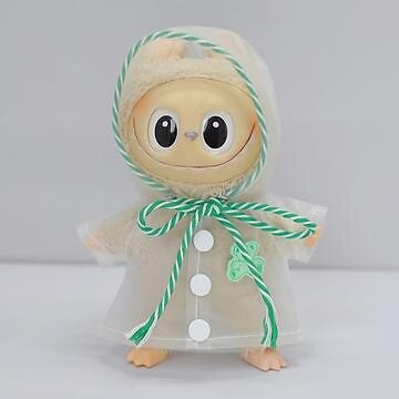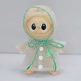MTP Products Regnfrakke med hætte og tegneseriebjørnetryk til Labubu dukke 17cm (Grøn)