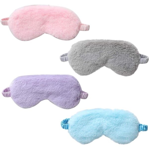 4 Pack Plys Øjenmaske (Blød Fluffy Justerbar til Børn Voksne Kvinder)