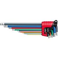 Wiha 43849 ErgoStar Farverig sekskantet kugleende L-nøglesæt, 9 dele