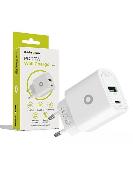 Mobile Origin MO12 PD20W 1 USB-A + 1 USB-C Vægoplader 20W