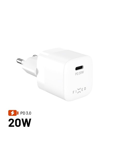 Fixed 20W Mini Vægoplader m. USB-C & PD - Hvid