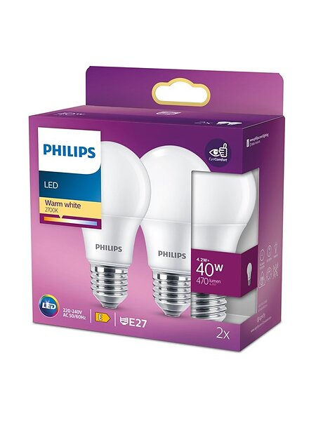 Philips 929003817234 LED A60 827 Matt E27 4.2W 2-pack