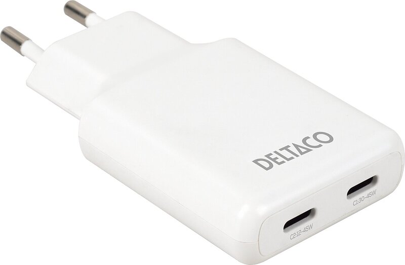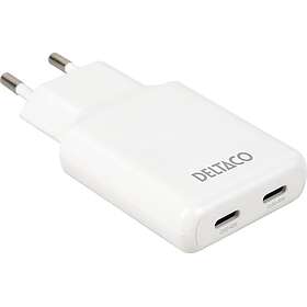 Deltaco USBC-AC200 Slim Dobbelt USB-C Vægoplader 45W