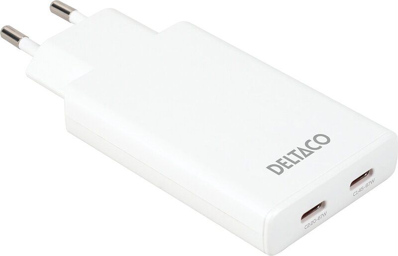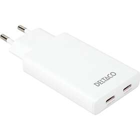 Deltaco USBC-AC201 Slim Dobbelt USB-C 67W Vægoplader