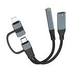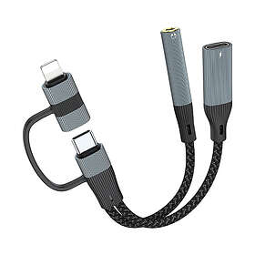 NÖRDIC 124610325 USB-C + Lightning til 3,5mm Lyd PD60W USB-C 15cm Adapter