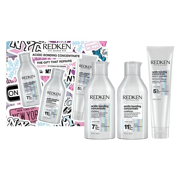 Redken Acidic Bonding Concentrate Gaveæske til kvinder (Shampoo 300ml, Balsam 300ml, Leave-In Treatment 150ml)