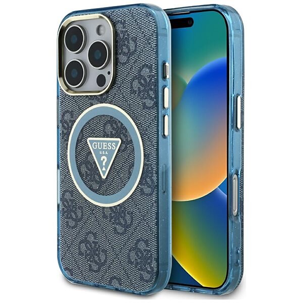Guess IML Metal Glitter 4G Cirkel Trekant MagSafe-etui til iPhone 16 Pro Max