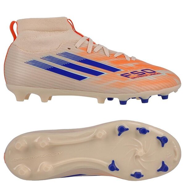 adidas F50 League Mid FG/AG Coral Blaze - Orange/Blå/Hvid Børn, størrelse 28½