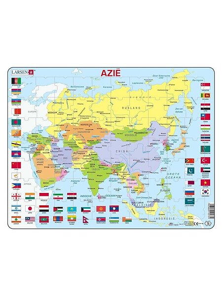 Larsen Puslespil Kort Asien med Flag 70 Brikker