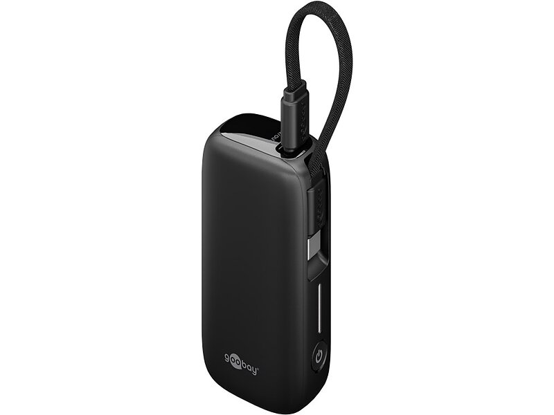 Goobay 5000mAh Powerbank med indbygget USB-C-kabel - 20W - Sort