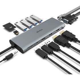 Akasa USB-C Dockingstation med VGA, 2 x HDMI, 1GbE (AK-CBCA28-18BK)