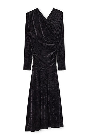 Ganni Velour Jersey Ruched Lang Kjole