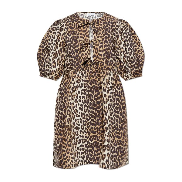 Ganni Tie String Leopard Print Mini Kjole