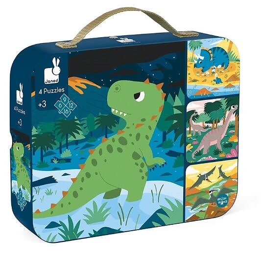 Janod 4 Dinosaurpuslespil med progressiv sværhedsgrad 6-9-12-16 Brikker