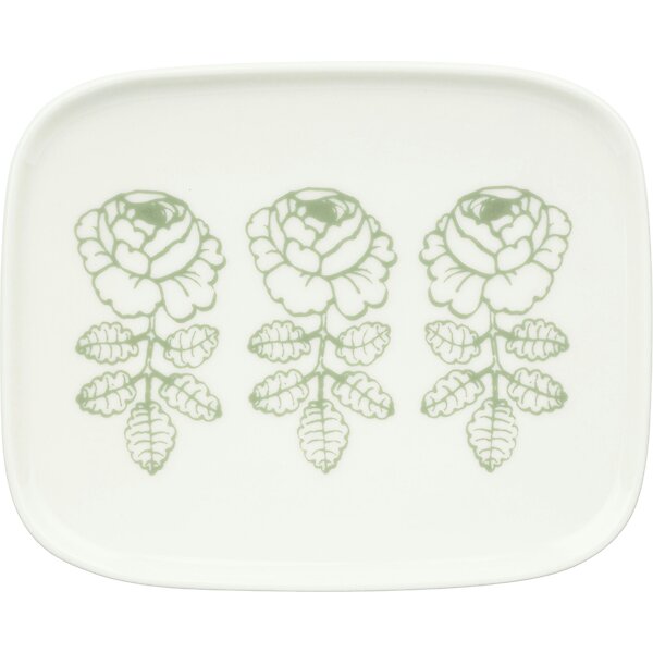 Marimekko-Wedding Rose Tallerken 12x15 cm, Hvid / Sage