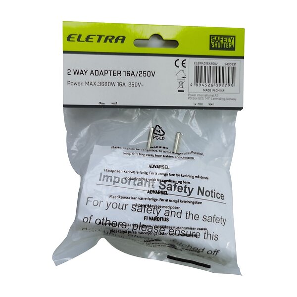 Eletra Stikdåse 2-vejs EL2WAD16A250V
