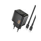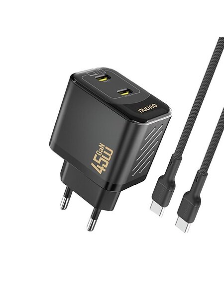 Dudao A28PCEU PD GaN 2xUSB-C Væglader med USB-C-kabel 45W
