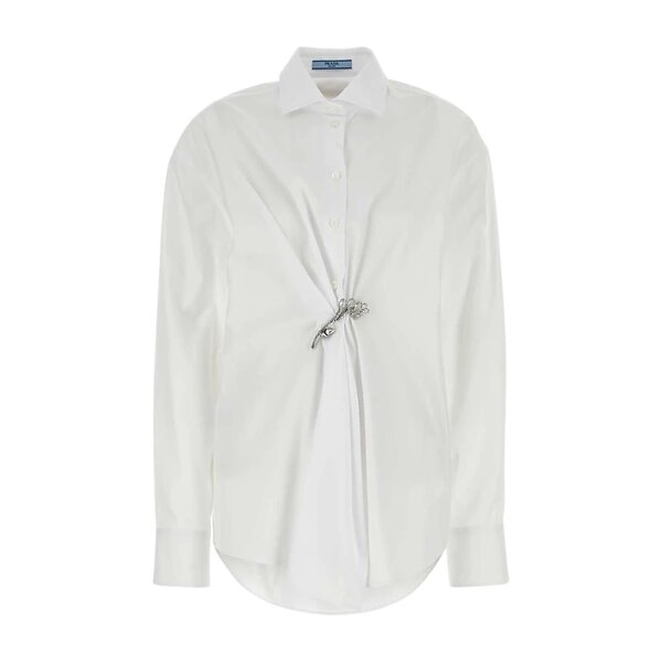 Prada Poplinskjorta med kristallbrosch Bluse (Dame)