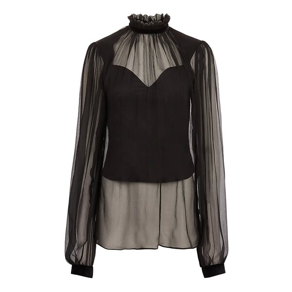Nina Ricci Ruffled Highneck Silk Bluse (Dame)