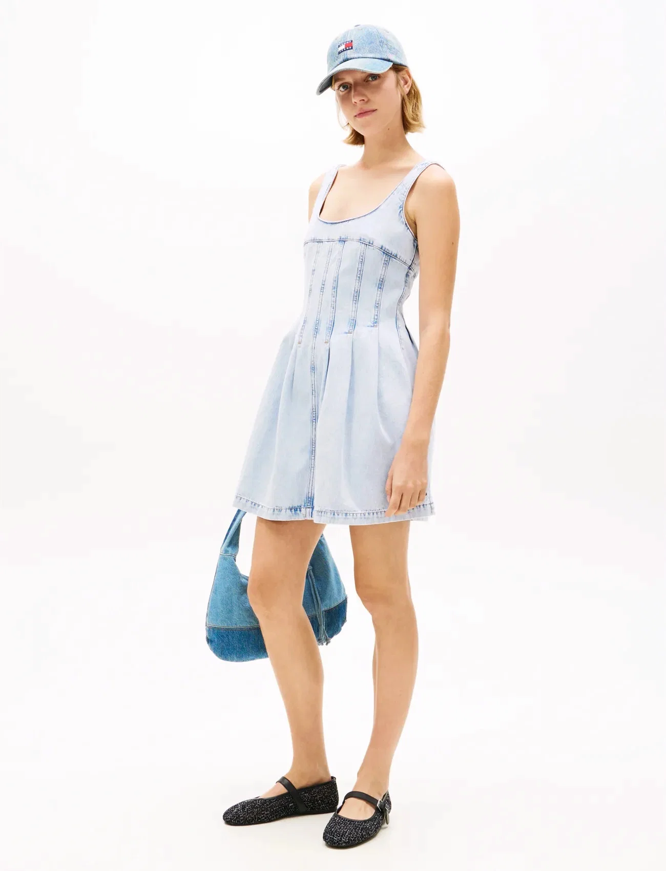 Tommy Jeans Pleat Seam Denim Dress Kort Kjole