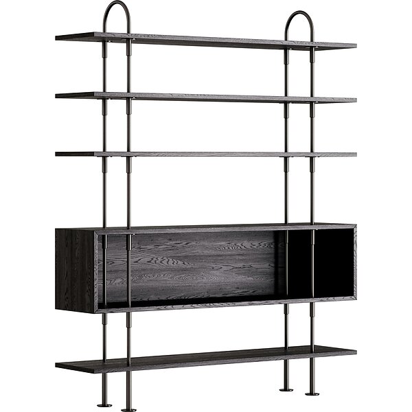 GUBI-Keen Hyldesystem Med 4 Hylder / 1 Kassehylde 160 cm, Sort Messing / Sortbrun bejdset Ask