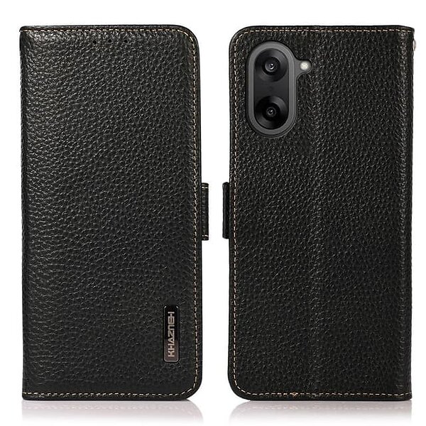 SKALO OnePlus Nord CE5 KHAZNEH Litchi Ægte Læder Flip Cover - Sort