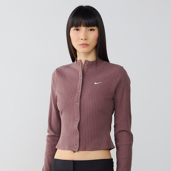 Nike Tætsiddende Chill-cardigan i maskinstrikket bred rib (Dame)