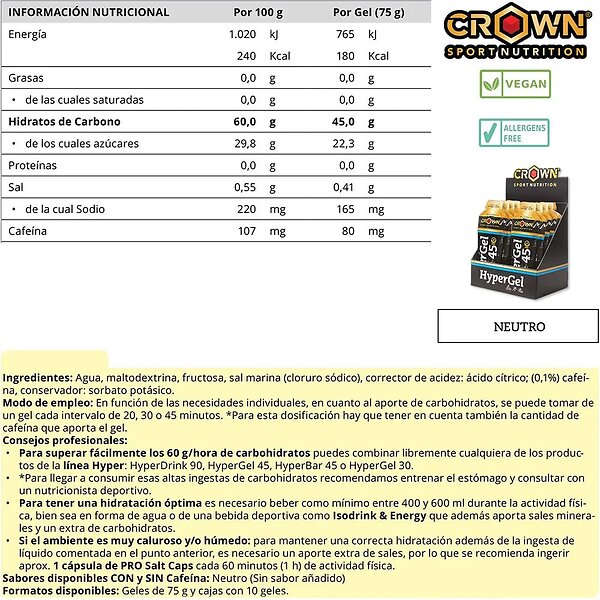 Crown Sport Nutrition Hyper 45 Neutral Energigel 75g 10pcs