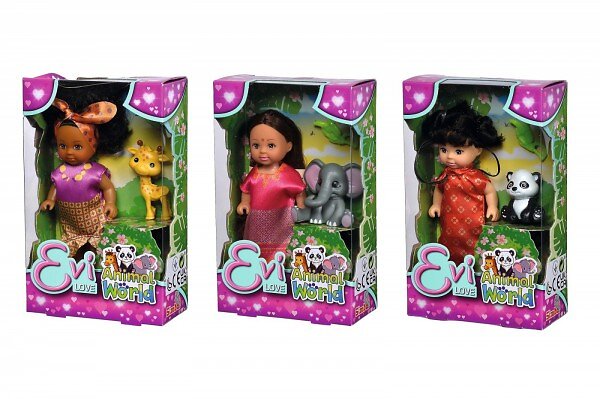 Simba Evi Love Dukke med Vilde Dyr Mix 3 Typer
