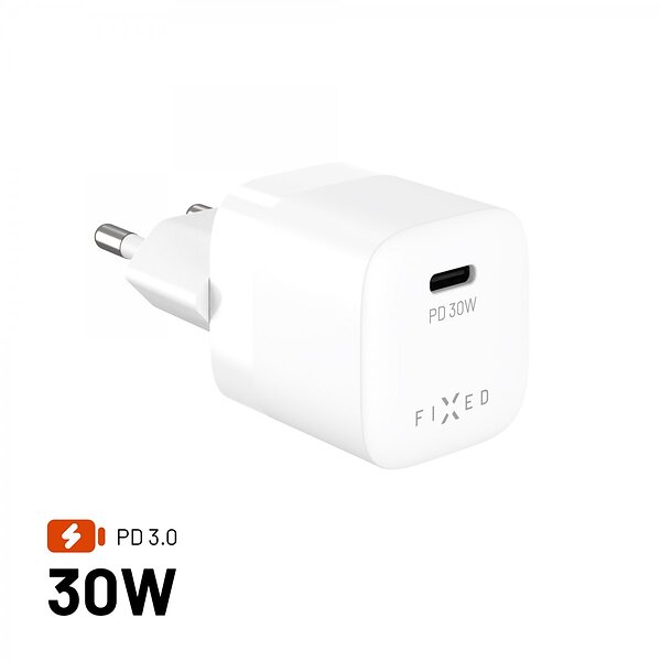 Fixed FIXCG30M-C-WH Mini GaN Oplader med USB-C-udgang og PD-understøttelse 30W