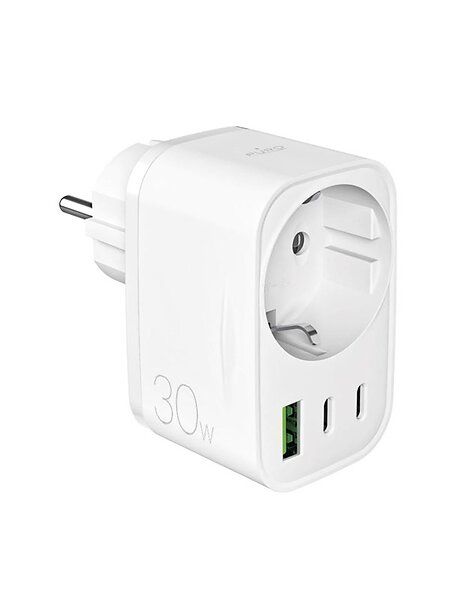 Puro 30W Power Delivery Oplader med Schuko-stik og stikkontakt 2x USB-C + 1x USB-A