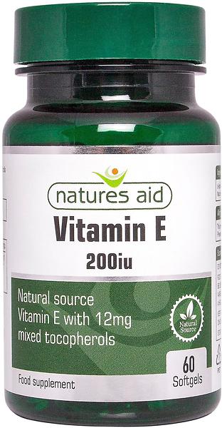 Natures Aid Vitamin E 200IU 60 Kapsler