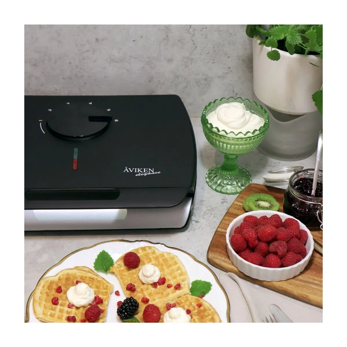 Både Elegance og Nobless har samme effekt på 1600 watt og producerer to hjerteformede vafler ad gangen, hver med fire hjerter. En betydelig forskel er dog, at Elegance er lettere med en vægt på 3,1 kg, hvilket kan gøre den nemmere at håndtere og opbevare. En anden forskel er højden, hvor Elegance er lavere med en højde på 80 mm sammenlignet med Nobless's 120 mm. Begge vaffeljern har praktiske funktioner som et varmebeskyttende håndtag, temperaturindstilling og lysindikator. Begge modeller er et solidt valg til brugere, der ønsker et funktionelt og stilrent vaffeljern.