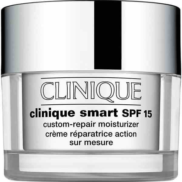 Den Clinique Smart Custom-Repair Moisturizer Comb/Oily SPF15 50ml er velegnet til kombineret og fedtet hud og indeholder funktioner som fugtgivende, anti-aging og oliefri formel. Den er designet som en dagcreme til kvinder med solbeskyttelse SPF15. Den Clinique Smart Custom-Repair Moisturizer Dry/Comb SPF15 30ml er velegnet til kombineret og tør hud med fugtgivende, anti-aging og blødgørende egenskaber. Den kan bruges både om dagen og om natten, hvilket gør den alsidig for kvinder med SPF15 beskyttelse.